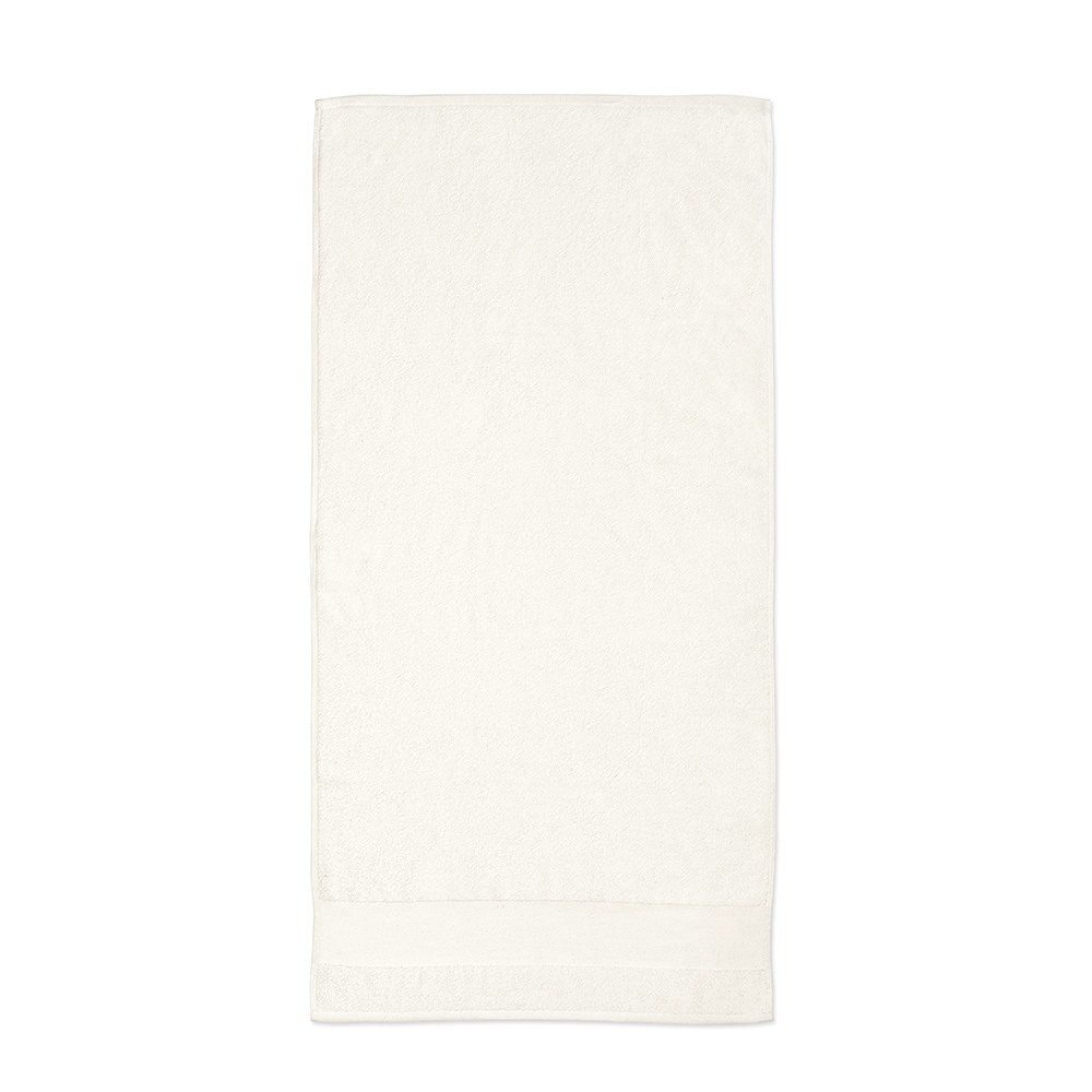 In a serene morning, our recycled cotton (60% recycled cotton and 40% rcotton) terry shower towel awaits. At 370 gsm, it's your comfort companion, measuring 70 x 140 cm. With a stylish print band, handy cotton hanger and eco-friendly packaging in a biodegradable polybag. Made in Portugal.