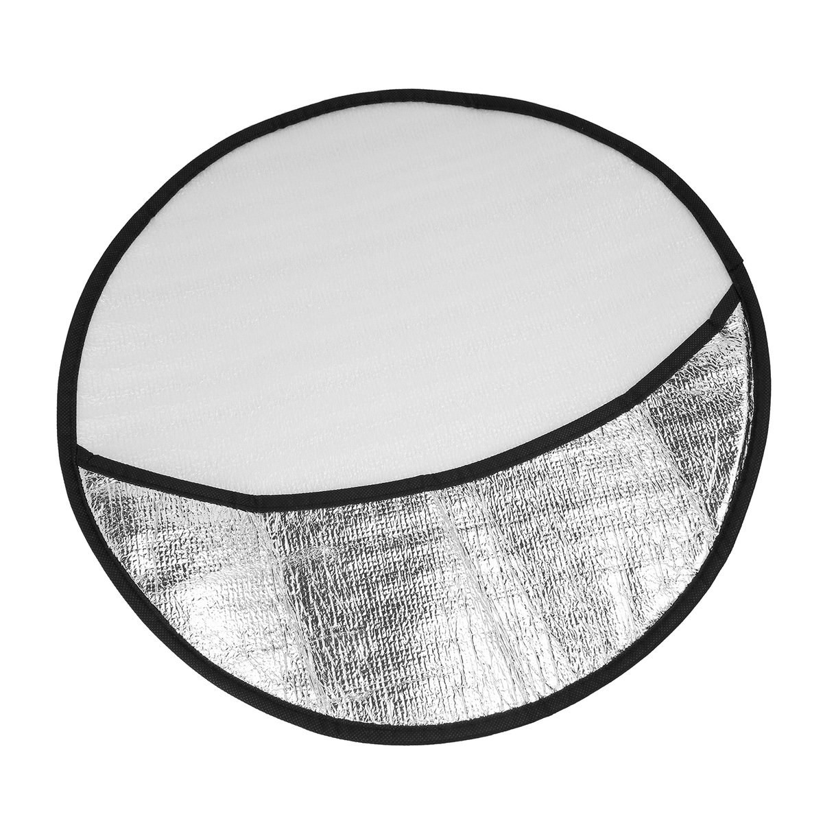 One-sided aluminium steering wheel cover in silver metallic finish with black polyester trimming. 43cm in diameter and foam on the back. Presentation unfolded for easy printing.