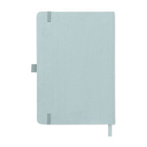 Casebound design with elastic band closure, pen loop, ribbon page marker, and washed kraft paper tag.