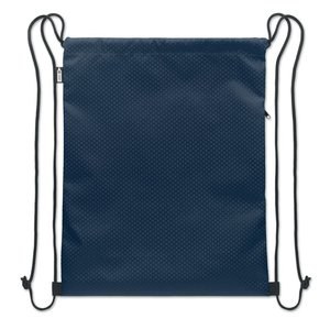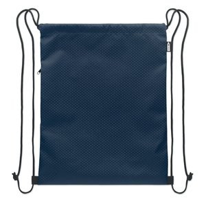 Drawstring bag in 420D RPET polyester with vertical side zip pocket and RPET 210D lining.