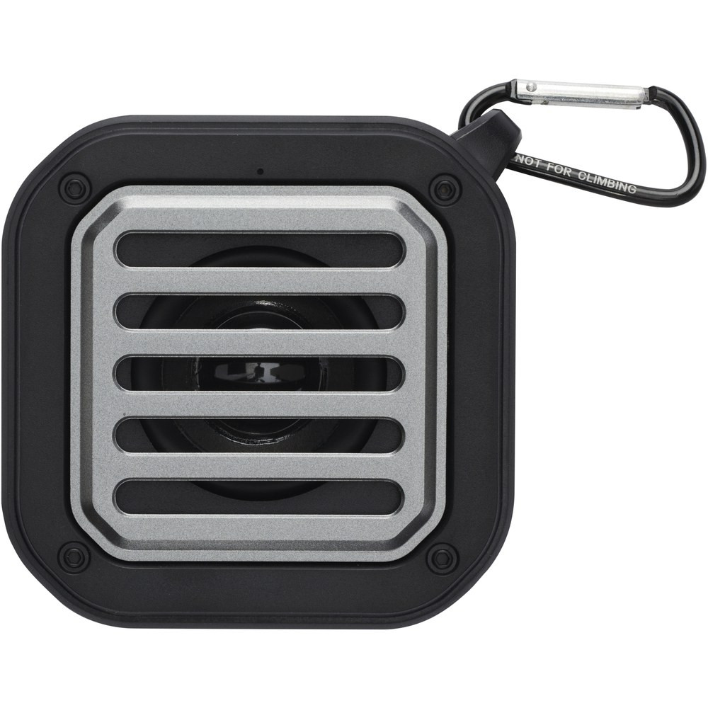 Boost your music with this RCS recycled rugged solar 3W Bluetooth® speaker with flashlight! It plays music, podcasts etc. from any Bluetooth® enabled device which makes it an ideal travel companion. The speaker features built-in music controls and a microphone for phone calls while on the go, as well as a handy flashlight. With the included carabiner it can easily be attached to for example a backpack, and with the IPX5 rating the speaker is protected against heavy rain. Thanks to its 400 mAh Li-ion battery, you can enjoy up to 3-4 hours of music at maximum volume. The charging time is 2 hours by cable, and approximately 6 hours by solar panel (depending on the sunlight brightness/consistency). The flashlight performance time is 10 hours when speaker function is off. Bluetooth® 5.3 with a working range of approximately 10 metres. Delivered with a user manual and a 30 cm USB-A to Type-C charging cable, and packed in a 100% recycled kraft paper box.