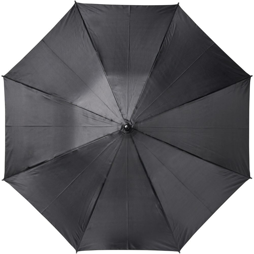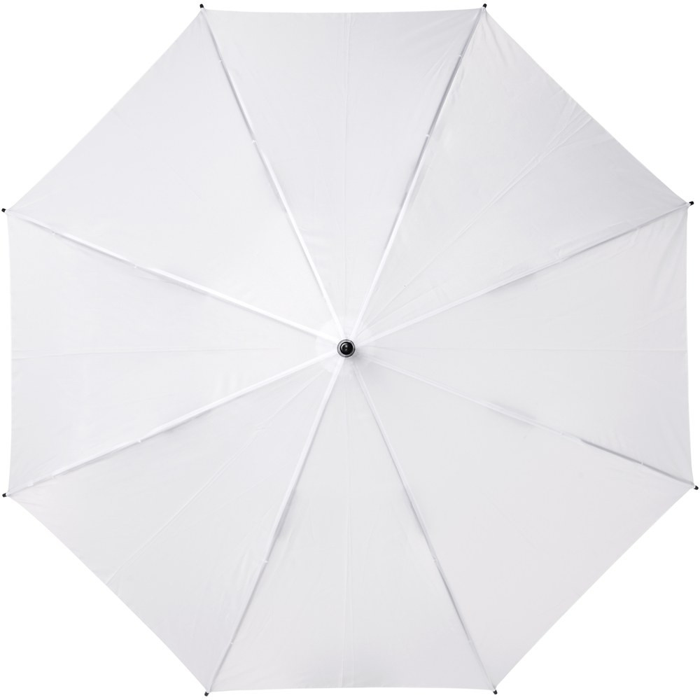 Automatically opening umbrella with a polyester canopy. It has a sturdy metal shaft, a patented high quality full fiberglass frame, offering maximum flexibility in windy conditions. Straight plastic handle, tips and top. Available in a wide variety of contemporary colours and has a large decoration area.