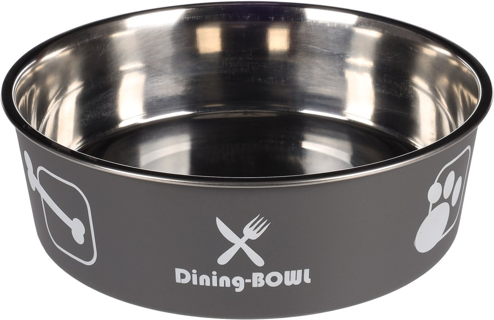 The Kena range features stainless steel bowls and bottles with a playful paw and bone motif. They feature a removable anti-slip ring and are available in different sizes and colors. These pots are dishwasher-safe, but the ring is not.