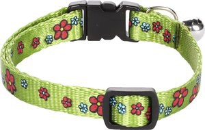 Faites briller votre chat avec ce joli collier. Le collier pour chat Fleur est quip d'une clochette pour que vous puissiez toujours entendre votre chat arriver et savoir o il se trouve. Le collier a un motif de fleurs et est d'un vert frais. De plus, le collier est facilement ajustable.
