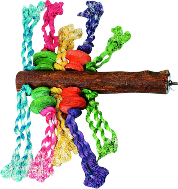 Cette perche est diffrente des autres perches, car elle est orne de perles et de cordes amusantes de diffrentes couleurs. Cela donne la perche un aspect trs joyeux pour vous et votre perroquet. De plus, la perche est facile fixer dans la cage.