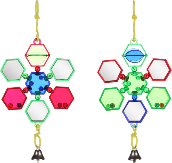 Ce jouet pour oiseaux en acrylique color est quip d'un miroir et d'une cloche et offrira sans aucun doute beaucoup de plaisir de jeu votre ami plumes.