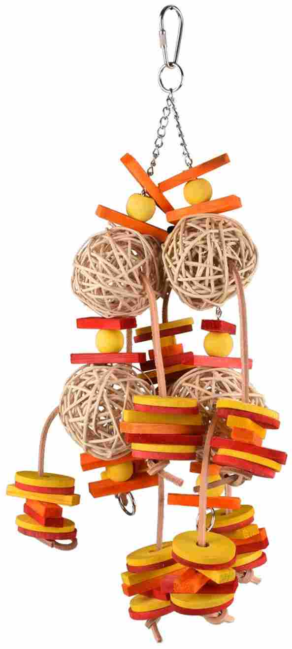 Wico Mia bird toy. This small, colorful bird cage toy is not only pleasing to the eye, but will also stimulate your bird as soon as it enters its cage. The toy is suitable for medium-sized birds and can be used as a small toy for larger birds. It's easy to attach to the bars thanks to its lockable hook.