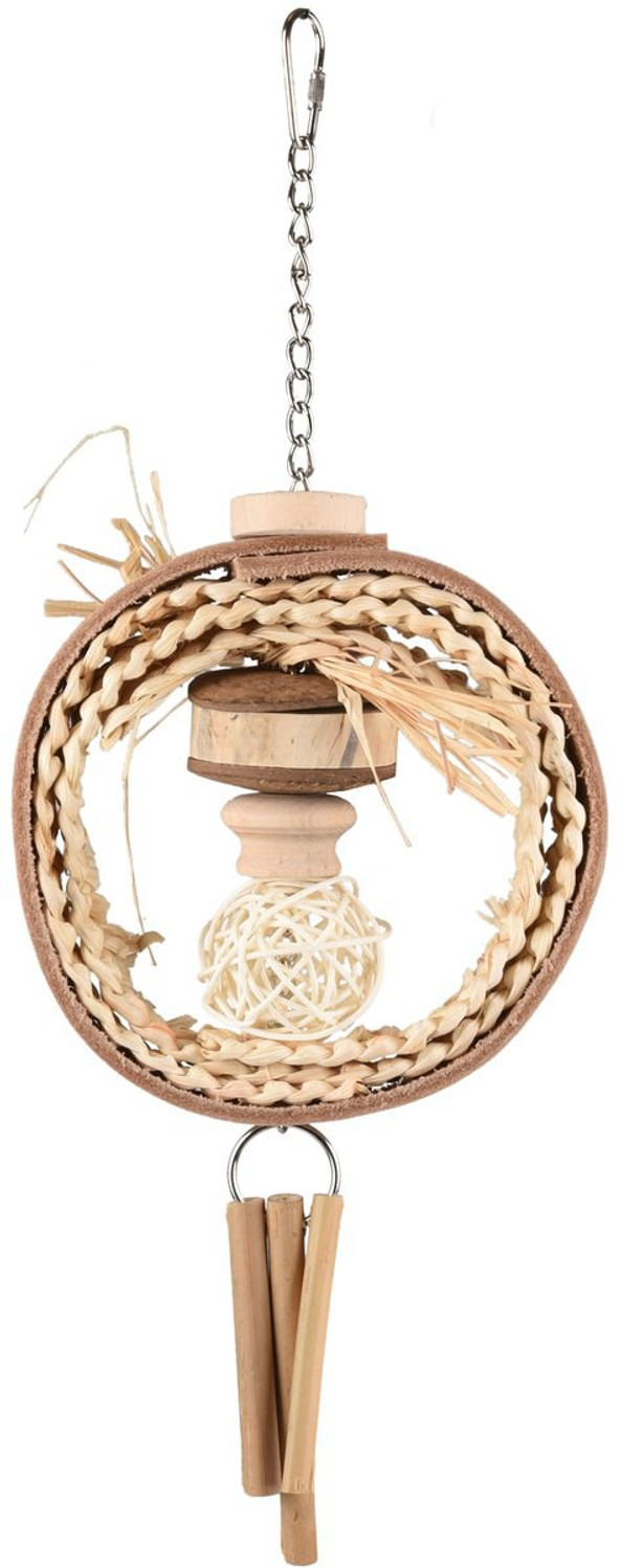 Ce superbe accroche-cage d'oiseau donne une allure bohme votre cage oiseaux. C'est un joli accroche-cage fabriqu partir de matriaux naturels qui non seulement a l'air sympa, mais qui offre galement votre oiseau les dfis ncessaires dans son habitat. L'accroche-cage pour oiseaux est facile fixer la cage et grce la chane, l'oiseau peut se balancer joyeusement dans la cage. Ce jouet mesure 40 centimtres, donc il faut suffisamment d'espace dans la cage.
