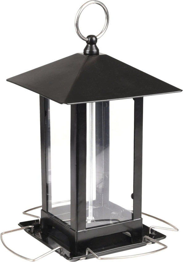 Ce distributeur de nourriture noir est idal pour tes oiseaux ! Il est fabriqu en mtal et en plexiglas, rsistant l'eau et facile suspendre. Remplis-le de graines et utilise le bloc de distribution pour nourrir de manire uniforme. Il possde des trous de drainage et un toit amovible pour un entretien facile.