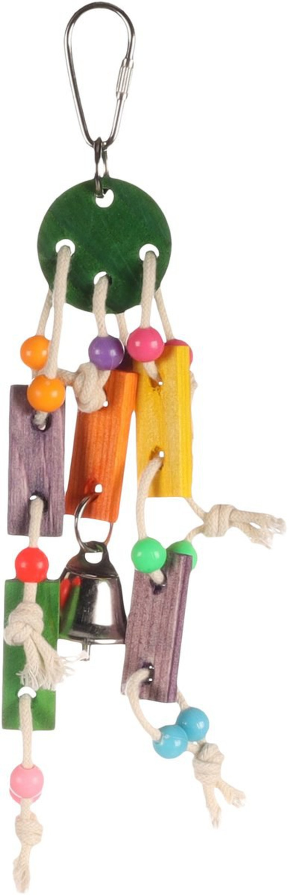 Offrez votre perruche une fte de jouets colore avec Ozie ! Ce jouet multicolore est fabriqu en bois, en plastique et en corde de coton, idal pour grignoter. Il contient des perles, des cordes et une petite clochette qui tintinnabule pour encore plus de plaisir de jeu. Accrochez-le facilement avec le systme de suspension en mtal.