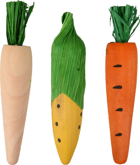 Ce jouet amusant pour rongeurs n'est pas seulement stimulant pour votre animal de compagnie, mais donne galement une touche amusante l'habitat de votre hamster, cochon d'Inde ou lapin. Le jouet est fabriqu partir de bois sr sur lequel votre rongeur peut grignoter, ce qui est bnfique pour ses dents. Il est livr en lot de 3 pices sous forme de dlicieux lgumes.