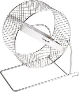 Laisse ton hamster courir et s'amuser avec la Roue Trota ! Elle est fabrique en mtal chrom et dispose de crochets pratiques pour l'accrocher. C'est le jouet parfait pour ton petit rongeur !