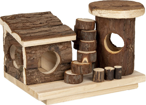 La maison pour rongeurs Tory est un terrain de jeu polyvalent pour les hamsters. Le terrain de jeu est fix sur une plaque de base, ce qui le maintient bien en place dans la cage du hamster. Les matriaux sont srs utiliser dans la cage du hamster et sont galement rongeables pour le hamster. Cette maison de jeu dispose de 2 cachettes et de nombreux lments que le hamster peut manuvrer dans la cage. Un jeu stimulant pour le hamster et une belle apparence dans la cage du hamster.