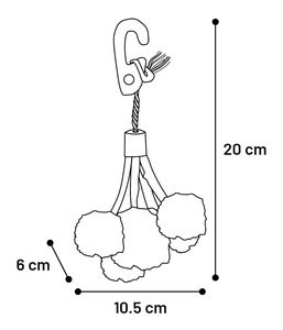 Accroche ce jouet color de Crups dans la cage de ton rongeur ! Il est fabriqu partir de feuilles de mas et de jute, ce qui le rend parfait pour mchouiller et grignoter. De plus, il est dot d'un crochet en bois pratique pour l'accrocher.