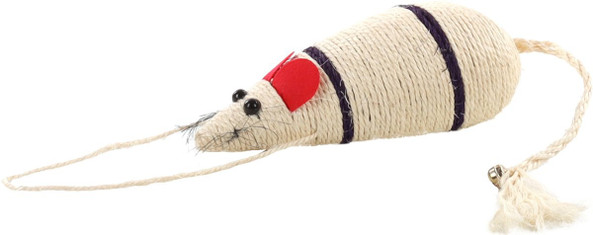 Ce grattoir pour chat en sisal avec souris est un jouet idal pour gratter. Il est fabriqu en corde de sisal durable et produit un bruit de cliquetis pour plus de plaisir de jeu. Il peut tre facilement fix au mur l'aide de la boucle et la clochette pour chat complte le tout.