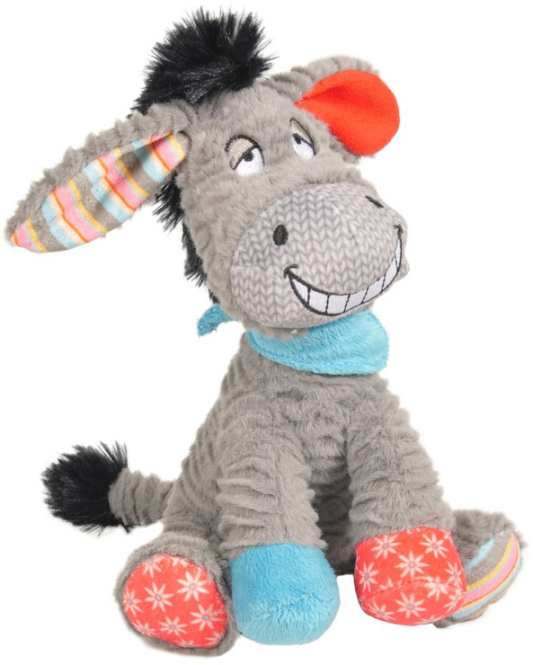 Cet ne en peluche est fabriqu en polyester et contient un couineur pour un plaisir de jeu accru. Idal pour les petits chiens.