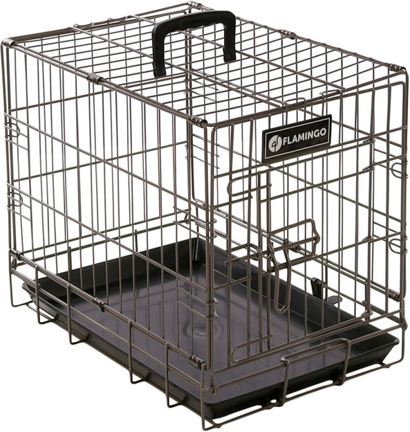Cette cage mtallique pliable avec revtement en poudre poxy est facile dplacer grce sa poigne amovible. Le tiroir extensible facilite le nettoyage. Vous disposez d'une porte avec verrou coulissant.