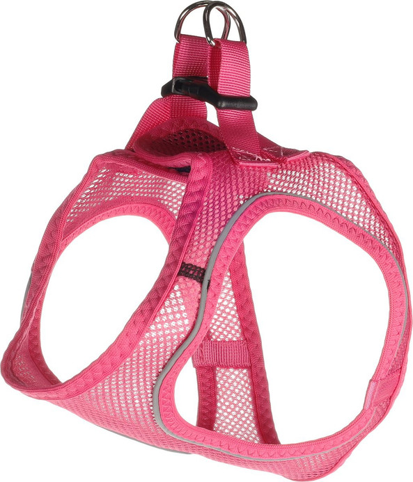 Ce joli harnais pour chiot rose est idal pour les petits chiots et les races de chiens plus petites. Le harnais pour chiot est fabriqu partir de matriaux respirants, ce qui le rend confortable pour le chiot. Grce une fermeture clic, le harnais est facile ouvrir et fermer. De plus, ce harnais pour chiot est quip d'un double anneau en D, ce qui vous donne beaucoup de contrle en route. Idal pour les petits quadrupdes curieux.