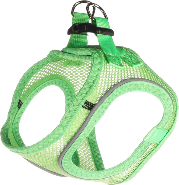Le harnais pour chiot Bento, color et joyeux, en vert, est non seulement confortable, mais offre galement une grande scurit en voyage. Ce harnais pour chiot est fabriqu en polyester respirant et est dot de bandes rflchissantes. De plus, le harnais pour chiot vert vif est dj trs visible en soi, ce qui assure une scurit supplmentaire pour votre jeune chiot qui n'est pas encore habitu marcher dans la rue. Ce harnais pour chiot est un modle d'entre, ce qui signifie que le chiot doit entrer dans le harnais et qu'il peut ensuite tre facilement fix avec la fermeture clic. Grce au modle du harnais pour chiot, les paules et le cou sont moins sollicits et vous avez un bon contrle en voyage. Idal pour les chiots, mais galement adapt comme harnais pour petit chien.