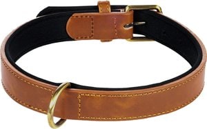 Le collier pour chien Lyabo a une belle couleur cognac lgante, une face intrieure noire et est fini avec des dtails dors. Il est disponible en plusieurs tailles et couleurs.