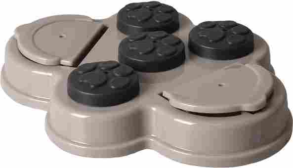 This interactive plastic toy with 4 rubber lids and 2 push-to-open lids is suitable for treats and mentally stimulates your pet.