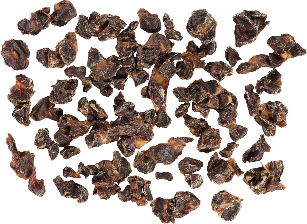 This 100% natural dog treat is made from dried chicken gizzards. The gizzards are suitable for all breeds of dog, including the smallest. Chicken gizzards are a crunchy, low-fat, naturally dried treat. This treat is not very hard and is therefore perfect as a snack, but less suitable for prolonged chewing. Chicken gizzards are rich in protein and dried without additives to make delicious dog treats.