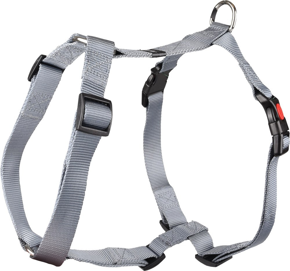 The Ziggi collection features a wide assortment of dog harnesses, collars and travel accessories. This dog harness is also called the H-Harness because of its ideal fit, which frees up the neck and nape of the animal's neck. The harness is easily adjustable in two places to suit your dog's morphology. It is water- and dirt-resistant, and features a double click fastener and D-ring for leash attachment.
