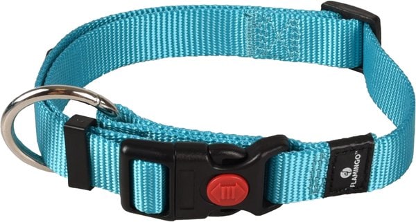 Ce collier pour chien en nylon est idal pour les chiots et les chiens adultes. Le collier est fabriqu partir de 75% de nylon et est fini avec une fermeture en plastique. Le collier turquoise est facilement ajustable dans les tailles indiques et est quip d'un anneau en D pour attacher la laisse. La gamme Ziggi pour chiens comprend diffrentes tailles de colliers et de harnais pour toutes les races de chiens.