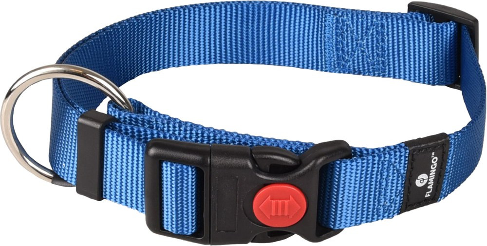 This nylon dog collar is ideal for puppies and adult dogs. The collar is made from 75% nylon and is finished with a plastic closure. The blue collar is easily adjustable to the sizes shown and features a D-ring for leash attachment. The Ziggi range for dogs includes different sizes of collars and harnesses for all breeds of dog.