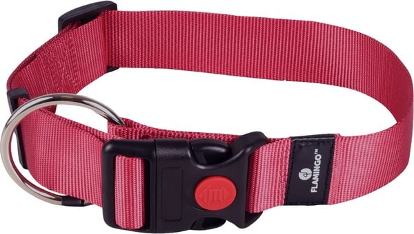 Ce collier pour chien rouge cerise est fabriqu en nylon. Le collier est solide et facile utiliser grce aux fermetures en plastique. Il convient aux chiots et aux chiens adultes et est quip d'un anneau en D pour attacher facilement une laisse approprie. La collection Ziggi comprend diffrents modles de colliers et de harnais pour chiens. Des laisses assorties sont galement disponibles.