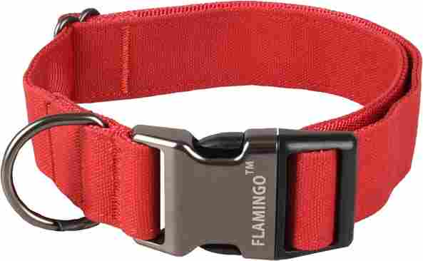 This pretty red polyester dog collar is perfect for adult dogs and puppies. The collar is adjustable according to the sizes indicated and can be easily adapted to the circumference of your dog's neck. The collar is finished to a high quality. For example, the dog collar features a practical fastener and a D-ring for attaching the leash. The Oxana collection consists of different colored dog collars and matching leashes.