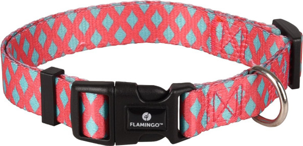 Ce collier pour chien amusant et ludique est facile utiliser et apporte une touche de gaiet. Le collier est rglable entre deux tailles, ce qui vous permet de l'utiliser pendant longtemps avec des chiots en pleine croissance. Mais il convient galement aux chiens adultes. Le collier est en nylon rose et vert avec des accents noirs. Grce une fermeture clic pratique, le collier est facile mettre et enlever sur le chien et grce l'anneau en D, il est rapidement et facilement attach une laisse. Des laisses assorties de la mme collection sont disponibles.