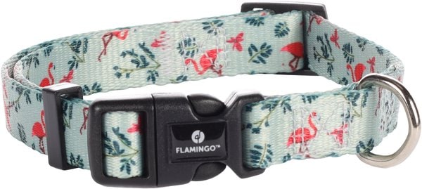 Ce joli collier Samar est de couleur vert clair avec un joli imprim flamant rose. Le collier est fabriqu en polyester. Le bracelet est rglable et peut tre ferm l'aide d'un systme de clics. Il y a galement un anneau en D pratique o vous pouvez attacher la laisse. Le collier Samar est disponible en 3 tailles et il y a galement une belle laisse assortie disponible !