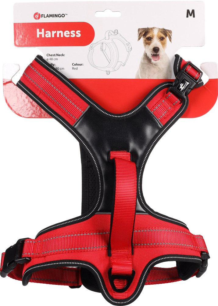 The beautiful Toga dog harness is ideal for comfortable walks with puppies, young dogs and adult dogs. This Y-shaped harness model offers perfect pressure distribution on the dog's body during the walk. That's why this model of dog harness is ideal for growing dogs and puppies. The Y-shaped harness has a closure on both the dog's belly and neck, so there's no need to pull it over the head, but it can be attached to the dog with click closures. Ideal for dogs afraid of the idea of a harness going over their head. The Y-shaped harness is adjustable on the chest and features a practical D-ring on the dog's back and neck. This makes the harness very popular and practical to use for regular walks as well as training. The dog harness has a handle for added control on the move if required and features reflective stitching, making it highly visible in the dark too.