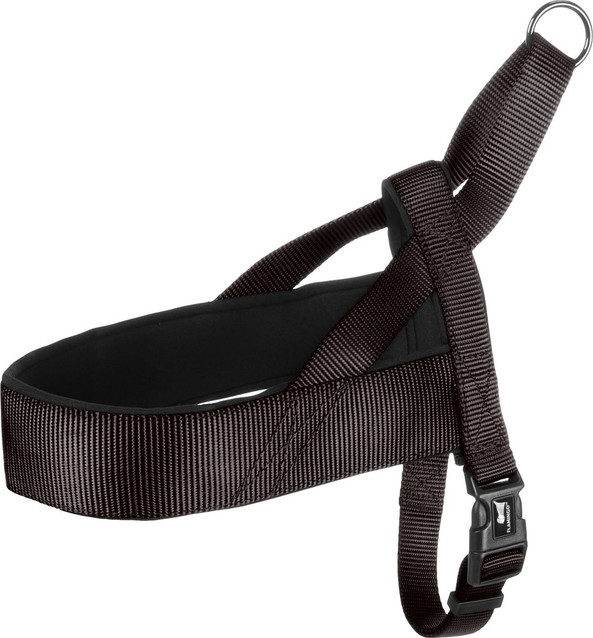 Le harnais Abbi est fabriqu en nylon noir, avec une doublure en polyester doux l'intrieur. Cela garantit que le harnais pour chien est non seulement solide et rsistant l'usure, mais aussi confortable pour le corps de votre chien. Le harnais Abbi est quip d'une sangle abdominale rglable, qui est galement quipe d'une fermeture clic pratique. Cela vous permet de mettre et d'enlever facilement le harnais sur votre chien. Le harnais contient galement un anneau en D auquel la laisse peut tre attache. La collection Abbi se compose de jolis articles pour votre chien, avec des laisses assorties disponibles.