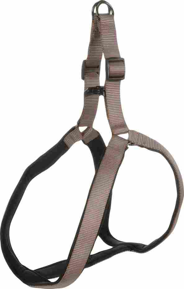 The pretty Abbi taupe dog harness is part of Flamingo's Step en Go collection. This collection consists of durable, hard-wearing and beautiful harnesses and accessories. This dog harness is an entry harness. The dog can easily get into the harness before you attach it to his back. The practical click fastener makes it easy to attach and remove the harness on the dog. The dog harness is lined for a snug, comfortable fit, helping to keep the dog comfortable during walks.
