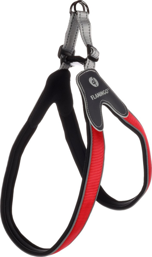 Le harnais pour chien rouge et noir Hilka est un harnais pratique disponible en diffrentes tailles. Ce harnais pour chien est fabriqu en nylon rsistant et est dot d'une doublure en noprne pour plus de confort. Les sangles de ce harnais d'entre passent sur la poitrine et le ventre, puis le harnais peut tre ferm sur le dos. La fermeture clic rend le harnais facile mettre et enlever pour votre chien.