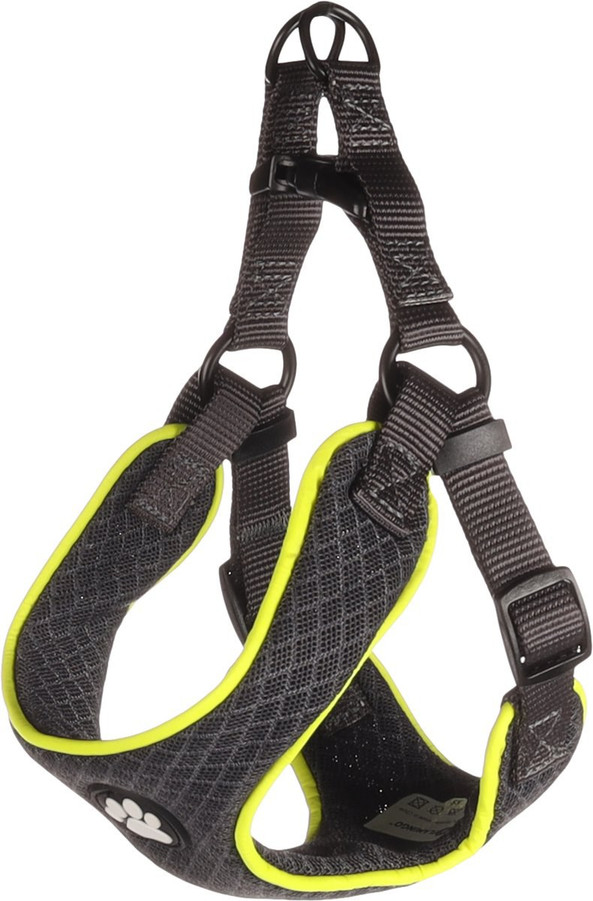 Ce harnais pour chien robuste est fabriqu en nylon et en maille respirante pour un confort optimal. Il est rglable en continu et dot d'une fermeture clic pratique. Les anneaux mtalliques ont une finition noire mate et il y a des bandes rflchissantes pour une visibilit supplmentaire dans l'obscurit. Avec 2 anneaux pour soulager la traction et rduire la pression sur la serrure. Idal pour les promenades aventureuses !