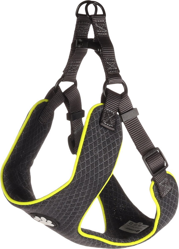 Ce harnais pour chien robuste est fabriqu en nylon et en maille respirante pour un confort optimal. Il est rglable en continu et dot d'une fermeture clic pratique. Les anneaux mtalliques ont une finition noire mate et il y a des bandes rflchissantes pour une visibilit supplmentaire dans l'obscurit. Avec 2 anneaux pour soulager la traction et rduire la pression sur la serrure. Idal pour les promenades aventureuses !