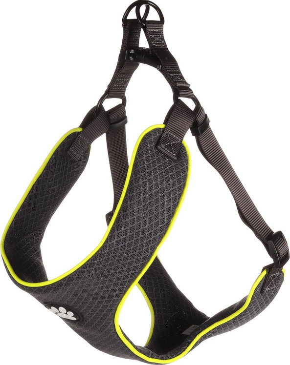 Ce harnais pour chien robuste est fabriqu en nylon et en maille respirante pour un confort optimal. Il est rglable en continu et dot d'une fermeture clic pratique. Les anneaux mtalliques ont une finition noire mate et il y a des bandes rflchissantes pour une visibilit supplmentaire dans l'obscurit. Avec 2 anneaux pour soulager la traction et rduire la pression sur la serrure. Idal pour les promenades aventureuses !