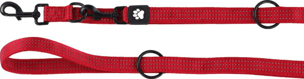Cette laisse pour chien en nylon est idale pour les promenades d'aventure. Elle est rglable, sans les mains et trs solide. La laisse est quipe d'un mousqueton noir mat et de bandes rflchissantes.
