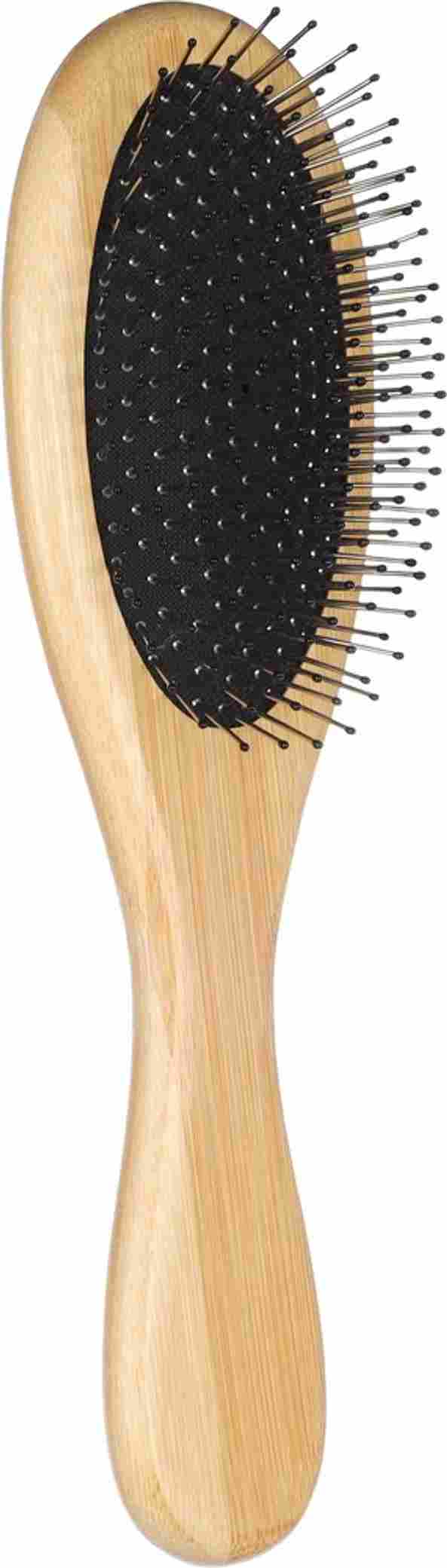 This bamboo brush is both eco-friendly and gentle on your furry companion. Metal pins with plastic tips untangle tangles without painful tugging, and also massage the skin, improving blood circulation. Ideal for dogs with short and long coats.
