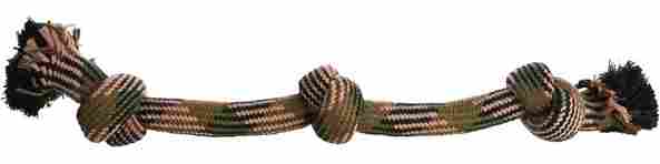 This sturdy play rope with 3 knots is ideal for your dog. Made from durable cotton and featuring a camouflage pattern, this toy offers hours of playtime fun.
