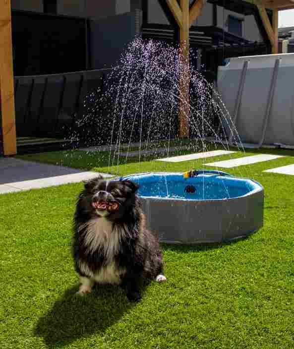 This pool is made of durable plastic and features a non-slip interior. It's easy to connect to the garden hose, thanks to the plug and lockable cap. The pool edge emits jets of water without the need for an air pump. A repair patch is also included.