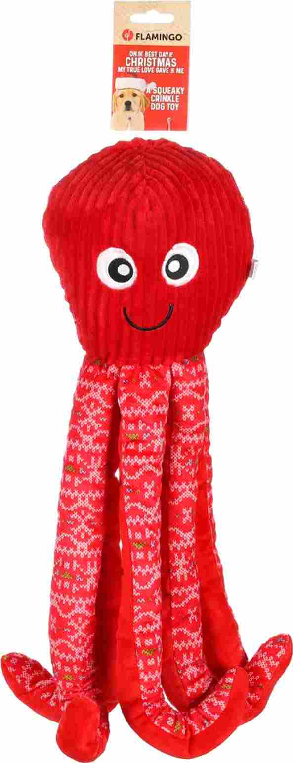 Flamingo f-523236 - Rouge - Festive Canine Octopus Toy with Squeaker & Crinkle