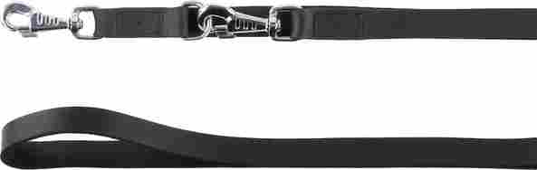 This dog leash is made of buffalo leather. It's strong and sturdy, but supple at the same time. The silver snap hook makes it quick and easy to attach your dog while walking. The leash features several D-rings, allowing you to give your dog more or less space while walking.