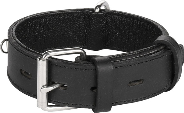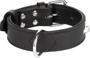Ce collier pour chien, fabriqu en cuir de buffle, a une belle couleur noir profond. Les pices sont chromes, ce qui les rend solides et insensibles aux conditions mtorologiques. Le collier est quip d'un anneau en D, auquel vous pouvez facilement attacher la laisse pour chien. Le collier fait partie de la collection Rondo, qui comprend plusieurs colliers et laisses pour chiens.