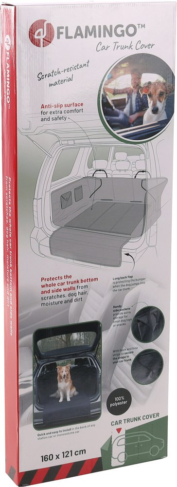 The Aiko car cover fits almost any car boot. The blanket is made from Oxford polyester, which is water and dirt resistant, perfect for after an adventurous walk with your dog. The cover is scratch-resistant and features a non-slip coating to prevent slipping in the boot. The cover can be easily secured with Velcro and has 2 openings for the car's safety belt. In addition, the cover features side walls and a bumper protector, protecting your entire car from scratches and dirt. Storage pockets offer a convenient place for the dog's leash and fun toys for the trip!