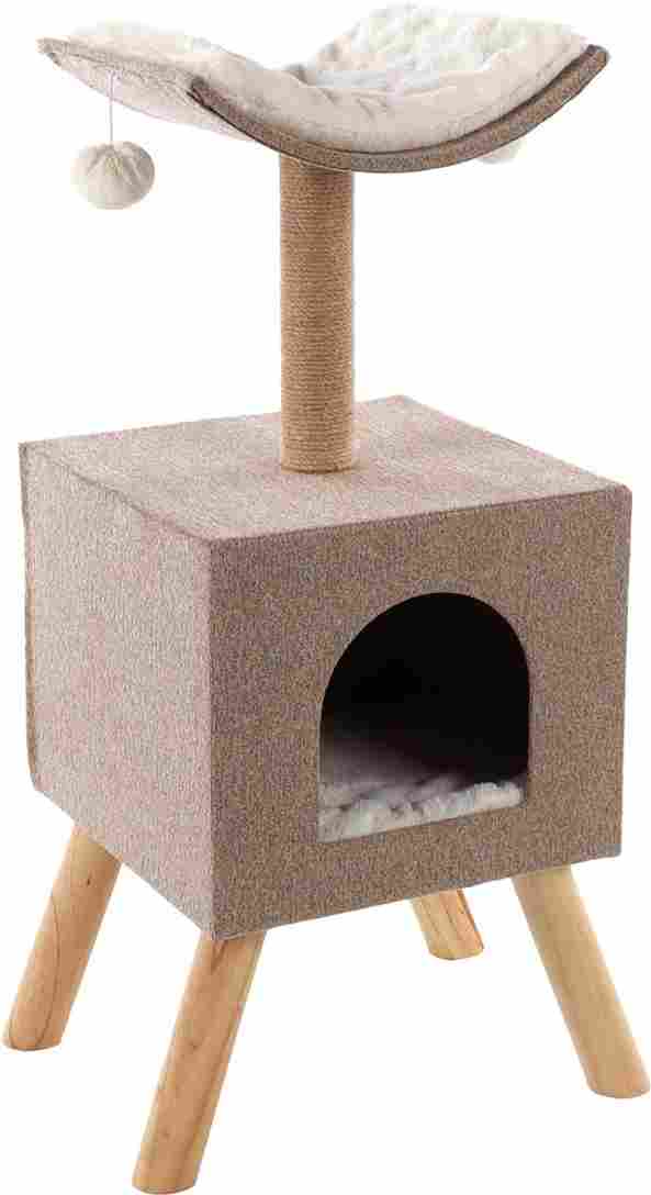 With this Scandi cat tree, you bring a stylish piece of claw furniture into the home that offers a scratching area, a resting area and a play area all in one. Cats can sleep, play and sharpen their claws whenever they need to.