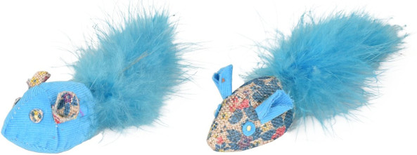 Ces souris pour chats ont une jolie couleur bleue ludique ! Elles sont dotes d'une queue stimulante avec laquelle votre chat peut jouer joyeusement. Les souris ont une taille d'environ 4 sur 15 cm et sont livres par lot de 2.